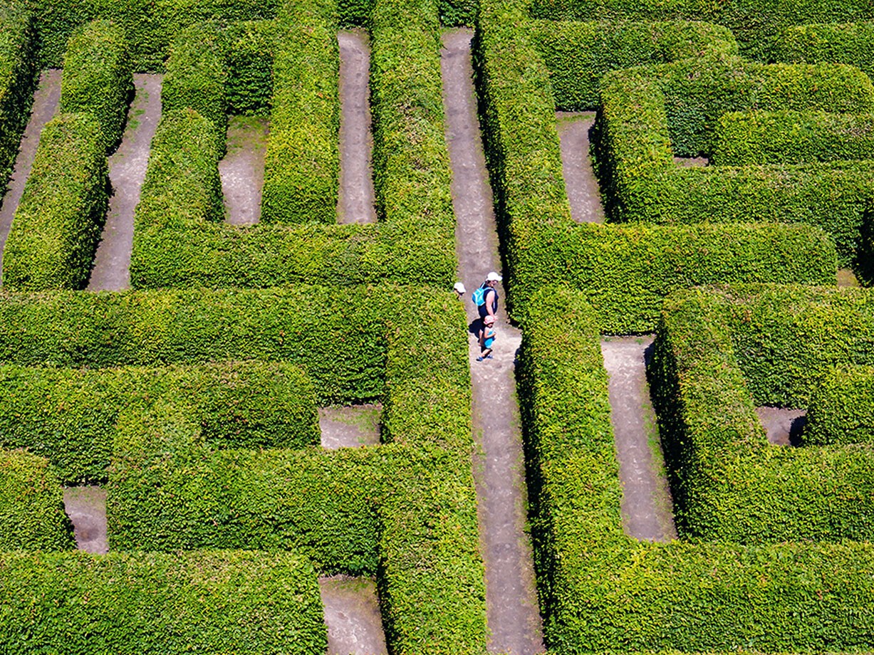 Imponujący, wspaniały, największy! Nieskończona plątanina korytarzy, ciasnych zaułków i tajnych przejść! Na śmiałków, którzy podejmą wyzwanie i zapragną dotrzeć do serca labiryntu, czeka niezwykła przygoda – pełna zagadek, niespodzianek i uśmiechu! A dla tych najodważniejszych, poszukujących dodatkowych emocji i adrenaliny, trasa po zmierzchu – gra ciemności i świateł, zaskakujących dźwięków przeszywających ciszę, no i... spotkanie z kimś ukrytym w cieniu, podążającym krok w krok – własnym strachem!