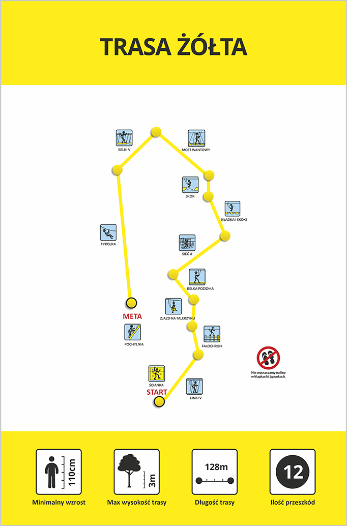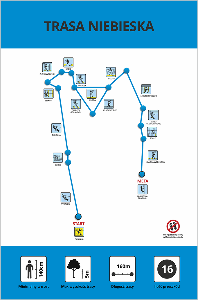 Niezapomniana atrakcja dla dzieci, młodzieży i dorosłych! Sieć rozpiętych pomiędzy drzewami – na różnych wysokościach – lin, drabinek, mostków, platform, tyrolek tworzących poszczególne ścieżki do pokonania.