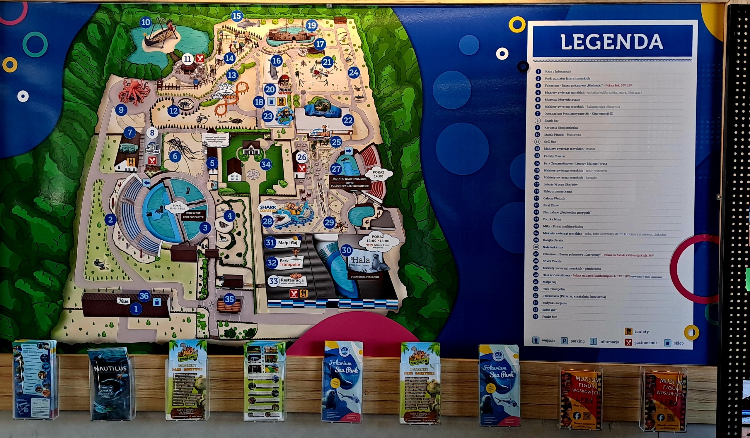 Na odwiedzających czeka prawdziwe bogactwo atrakcji związanych z tematyką mórz i oceanów oraz historią i kulturą polskiego Pomorza: prehistoryczne oceanarium 3D, muzeum marynistyczne, kino emocji 5D, park makiet zwierząt morskich, galeon "Wodnik", park miniatur latarni morskich, a także – i dla tych najmłodszych, i dla tych nieco starszych Gości – rozbudowana strefa zabaw i rozrywki (park zręcznościowo-linowy, kolejki, karuzele, trampoliny...).