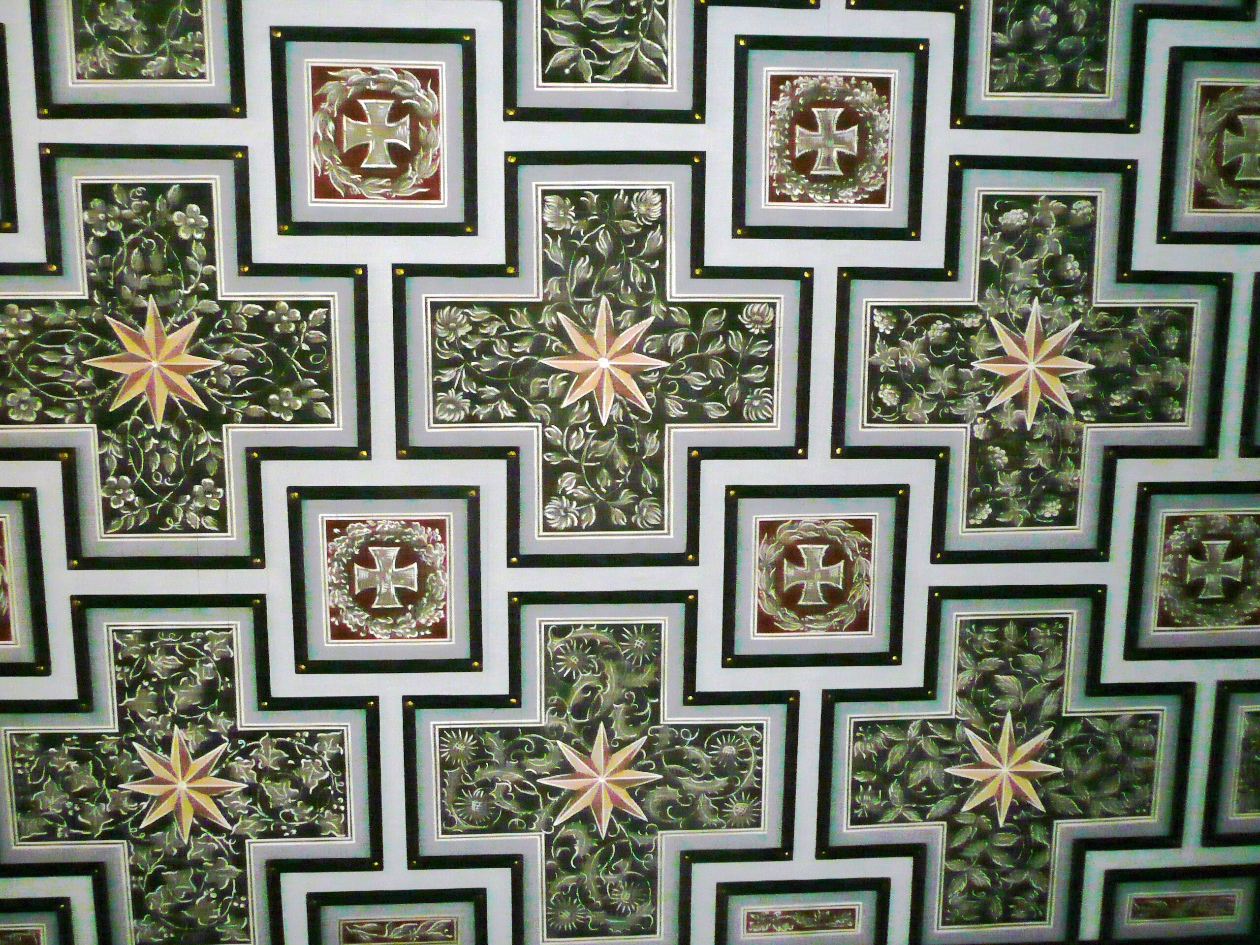 Wnętrze świątyni urzeka zachowanym stanem i oryginalnością detalu. Niezwykle bogaty i reprezentacyjny wystrój jednoznacznie nawiązuje do niemieckich symboli wojskowych pod postacią m.in. dębowych liści czy równoramiennych krzyży. Do najcenniejszych elementów wyposażenia należy zespół witraży o militarnej treści, polichromowana empora oraz organy rodzinnej firmy Grünebergów ze Szczecina. Ponadto na zewnętrznej ścianie kościelnej wieży fragmentarycznie zachowała się szklana, lazurowo-niebieska wartościowa mozaika.