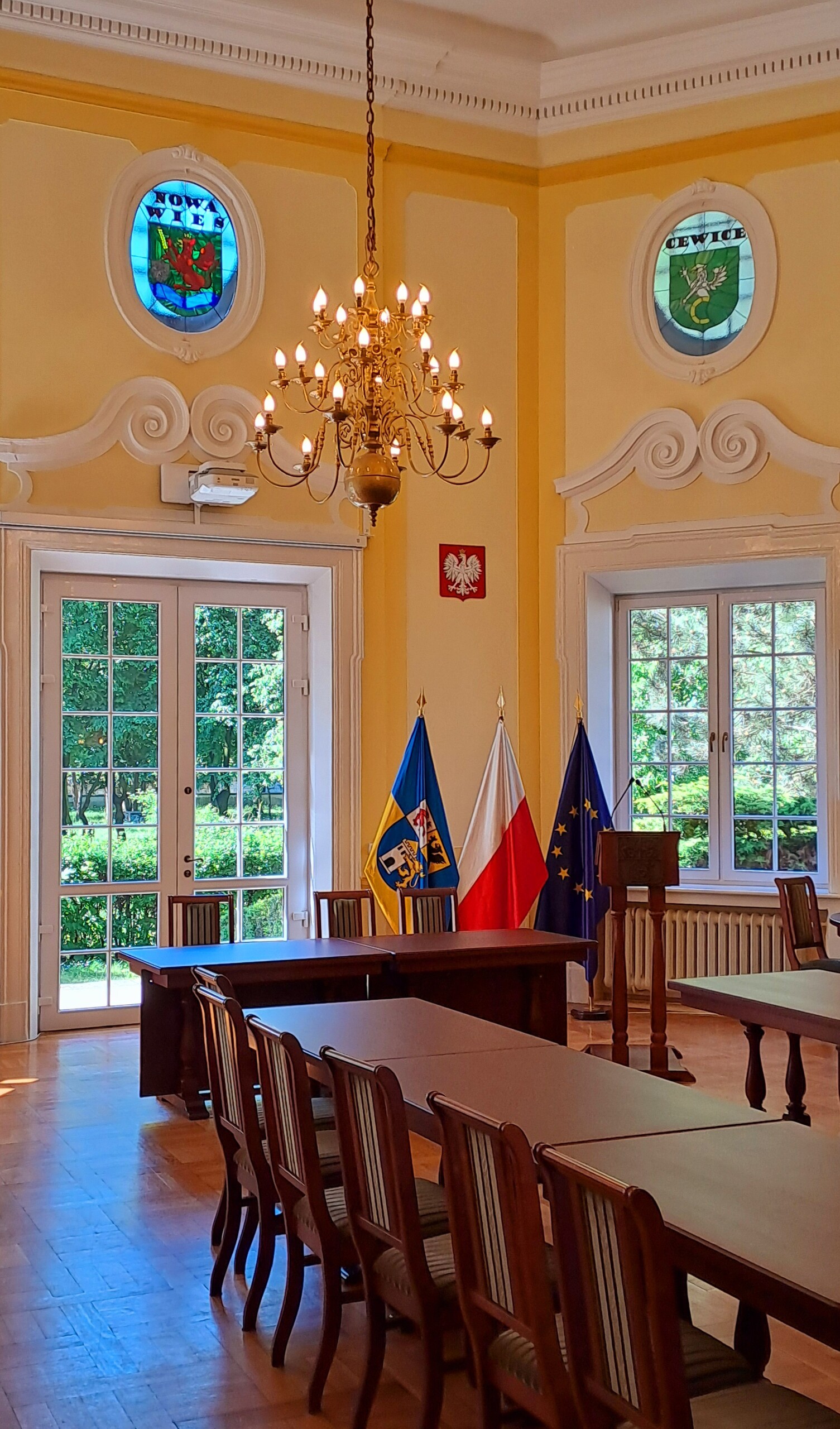 Wnętrze obiektu jest ergonomiczne i obszerne, dostosowane do współczesnych wymogów funkcjonowania budynku użyteczności publicznej. Jego centralną, charakterystyczną część stanowi dwukondygnacyjna, ośmiościenna reprezentacyjna sala obrad, w której organizowane są wszystkie najważniejsze uroczystości.