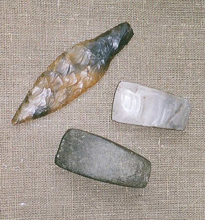 Najstarsze zabytki, pochodzące z okresu mezolitu, to przede wszystkim kamienne narzędzia używane przez pierwsze koczownicze społeczności zamieszkujące okoliczne tereny. Część wystawy poświęcona zaś epoce brązu składa się w zdecydowanej mierze z naczyń ceramicznych o przeznaczeniu sepulkralnym (stosowane były jako urny w upowszechniającym się ówcześnie obrządku ciałopalnym). Z kolei pierwszy okres epoki żelaza reprezentowany jest przez bogaty zbiór popielnic (urn) twarzowych kultury pomorskiej – bardzo charakterystycznych naczyń zdobionych plastycznymi wizerunkami twarzy ludzkich.