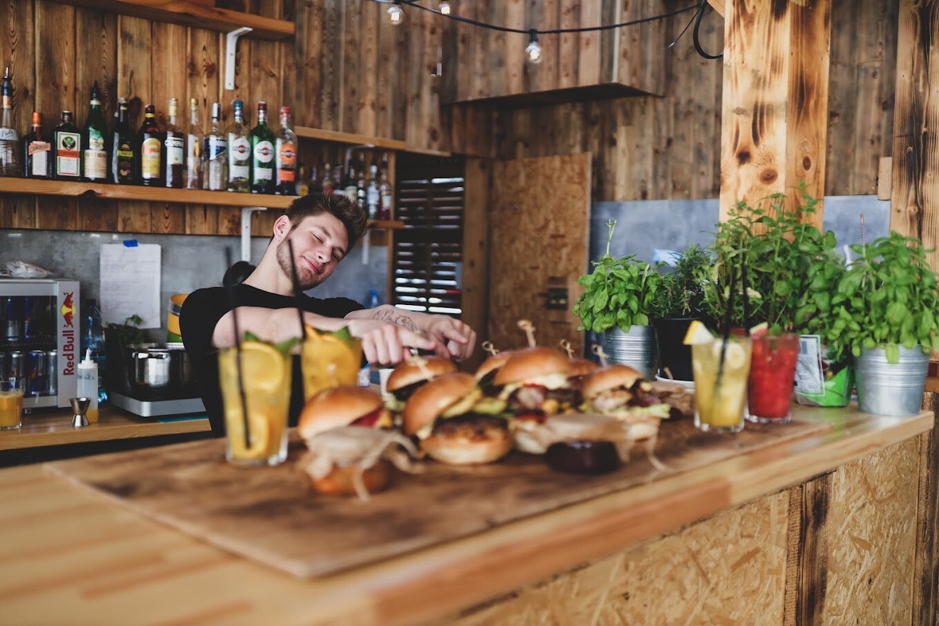 Skromna knajpka z tarasem oferująca potrawy kuchni międzynarodowej, takie jak burgery i pizza, oraz koktajle i piwo.
