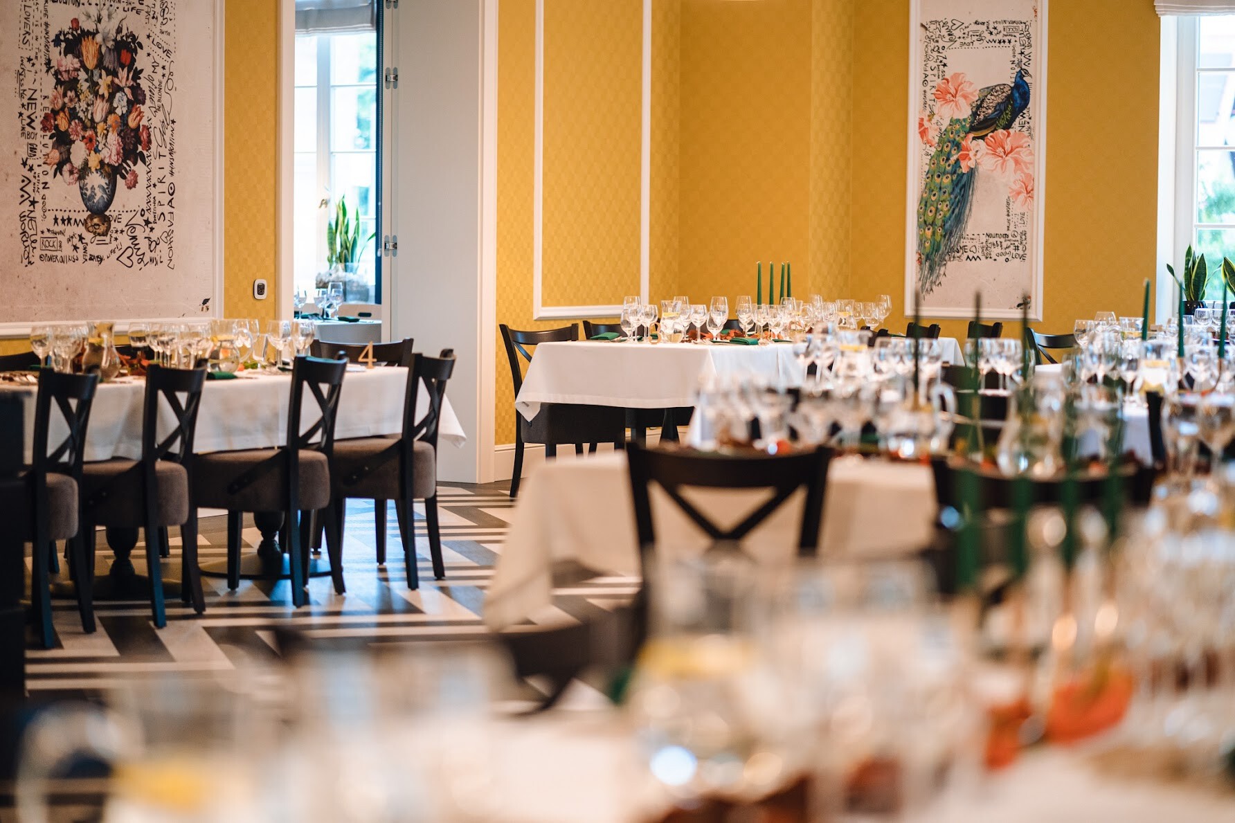 Oferowane dania to swoisty hołd, który składają kaszubskim korzeniom, dodając do potraw nowe aromaty, smaki lub dodatki. Dzięki unikalnemu duchowi oryginalnego, zabytkowego pałacu oraz pięknemu wystrojowi wnętrz "Bluszczowa" jest doskonałym obiektem do zorganizowania: kameralnych spotkań biznesowych, fascynujących eventów firmowych, angażujących spotkań, konstruktywnych warsztatów oraz uroczystych kolacji firmowych.