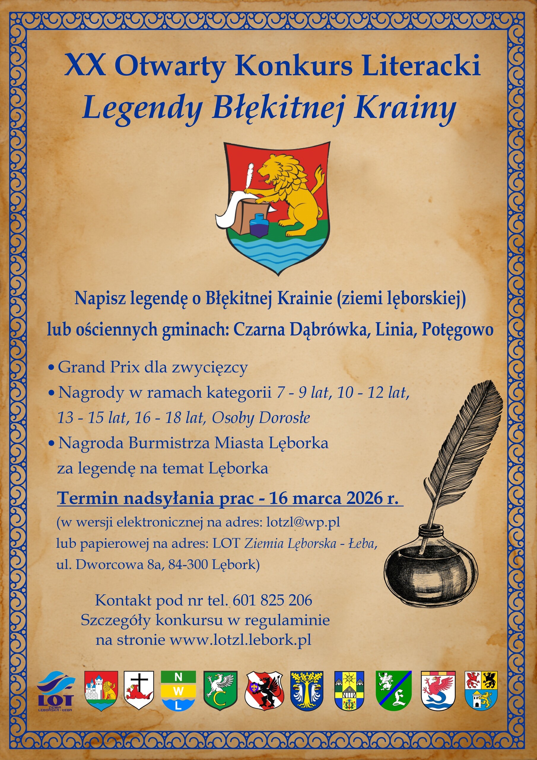 Lokalna Organizacja Turystyczna "Ziemia Lęborska - Łeba" ogłasza rozpoczęcie XX Otwartego Konkursu Literackiego "Legendy Błękitnej Krainy".