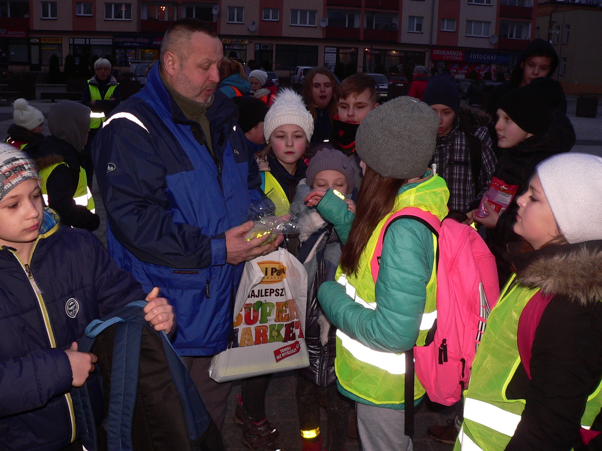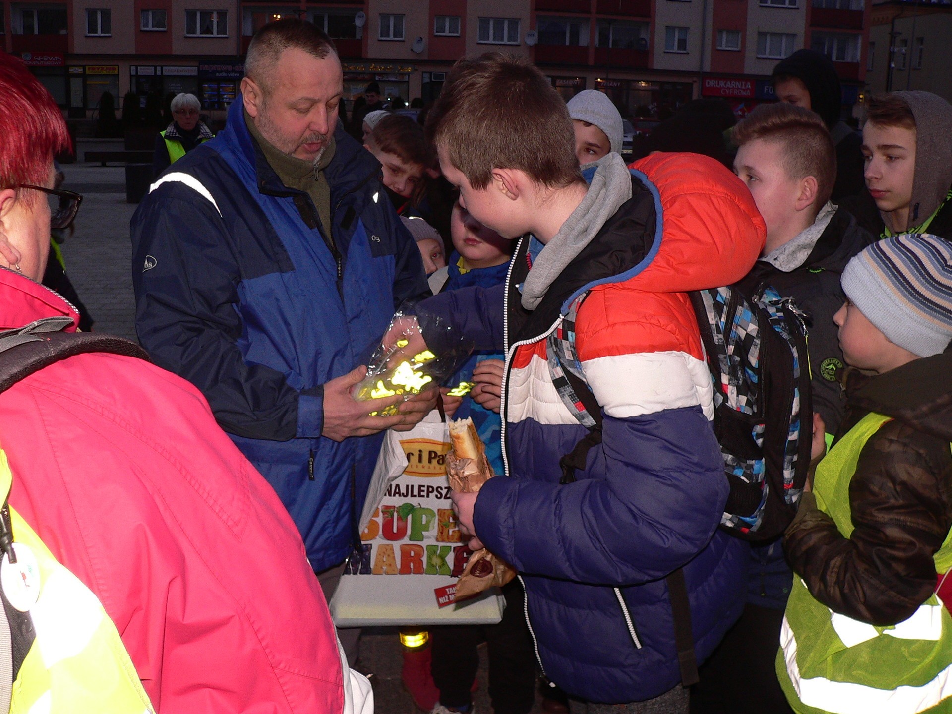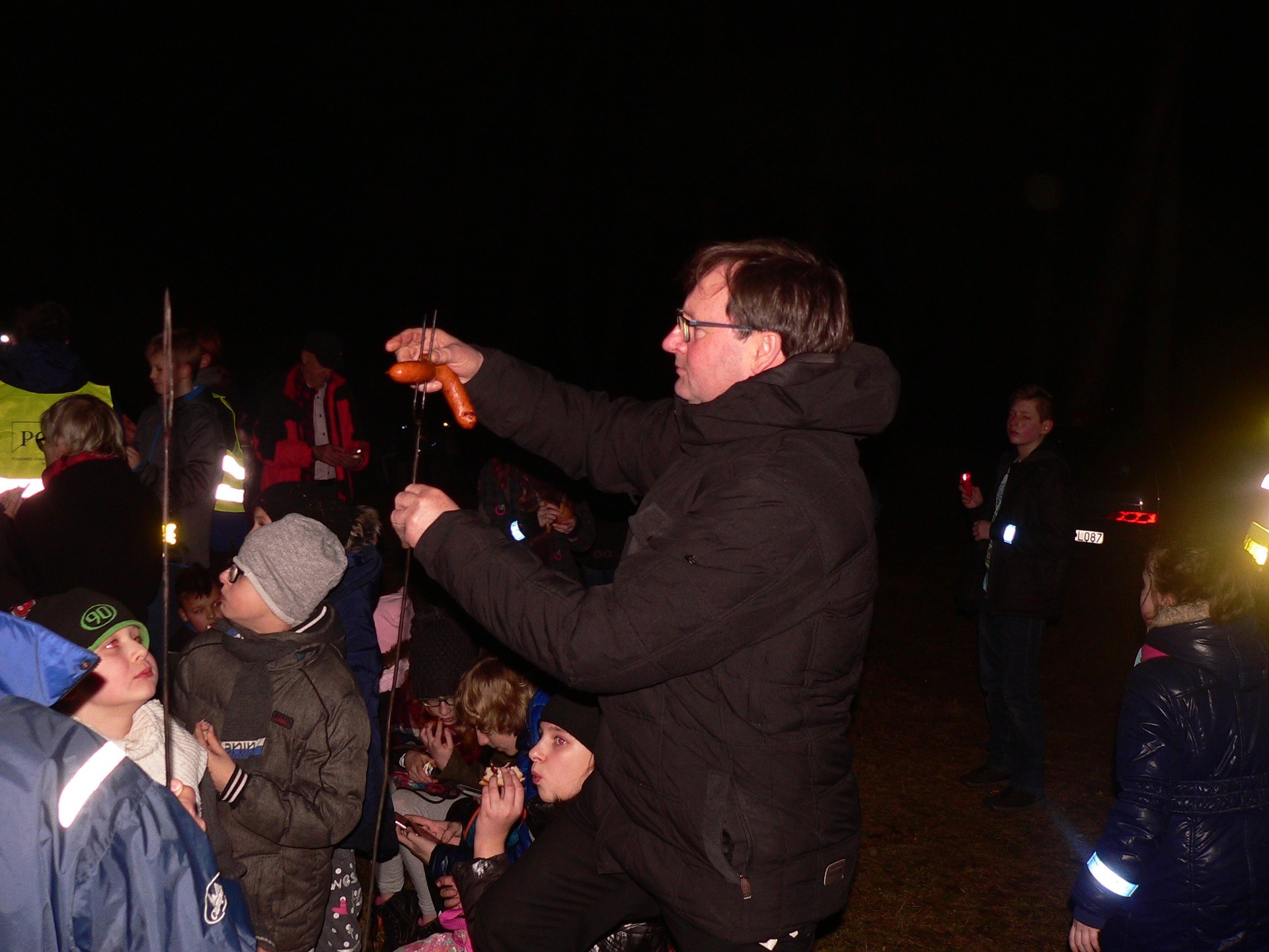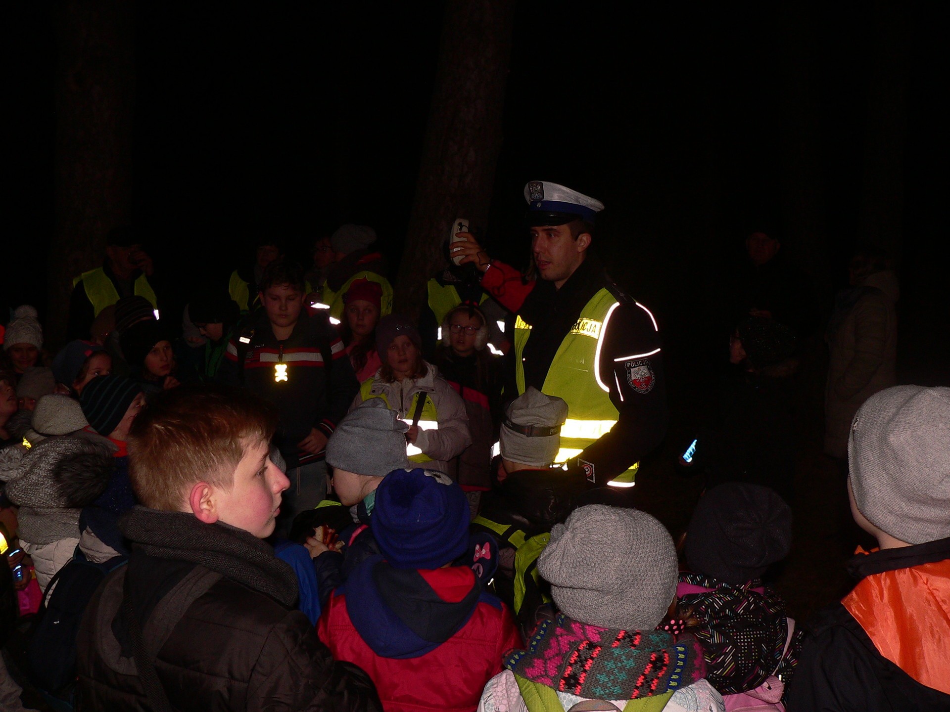 Finałowym akcentem imprezy był posiłek regeneracyjny przy wspólnym ognisku w Parku im. Bolesława Chrobrego, gdzie pan Arkadiusz Loda, aspirant z Komendy Powiatowej Policji w Lęborku zapoznał dzieci uczestniczące w rajdzie z zasadami używania po zmierzchu elementów odblaskowych.