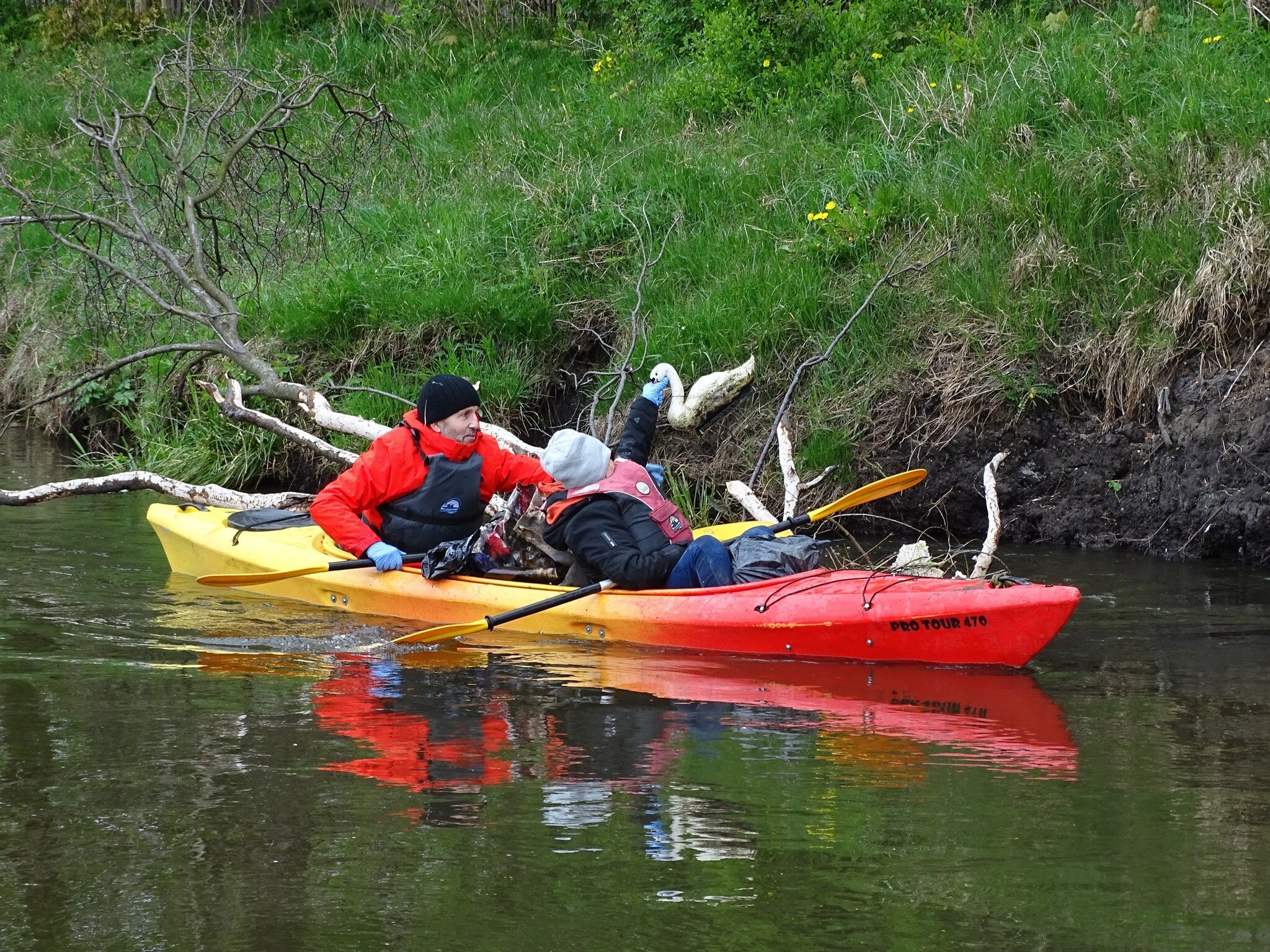 Leciwy i poniszczony sprzęt radiowo-telewizyjny, sfatygowane dziecięce zabawki, połamane elementy AGD, opony wszelkiej maści gabarytów, niezliczoną ilość plastikowych, aluminiowych i szklanych butelek i puszek – to wszystko wydobyto z rzeki Łeby oraz Okalicy w trakcie akcji "Błękit rzeki dobrem Krainy". Efektem prac porządkowych było zebranie łącznie ponad 1 t nieczystości (podczas dotychczasowych szesnastu edycji – sumując – już około 21,5 t).