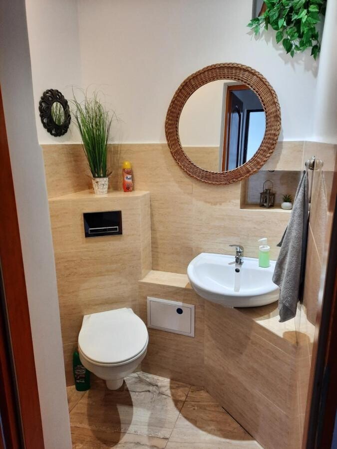 Apartament znajduje się w malowniczej okolicy, otoczonej zielenią i pięknymi lasami. To idealne miejsce dla miłośników natury, którzy chcą cieszyć się świeżym powietrzem i pięknymi widokami. W pobliżu znajduje się również jezioro, gdzie można popływać i zrelaksować się na plaży.