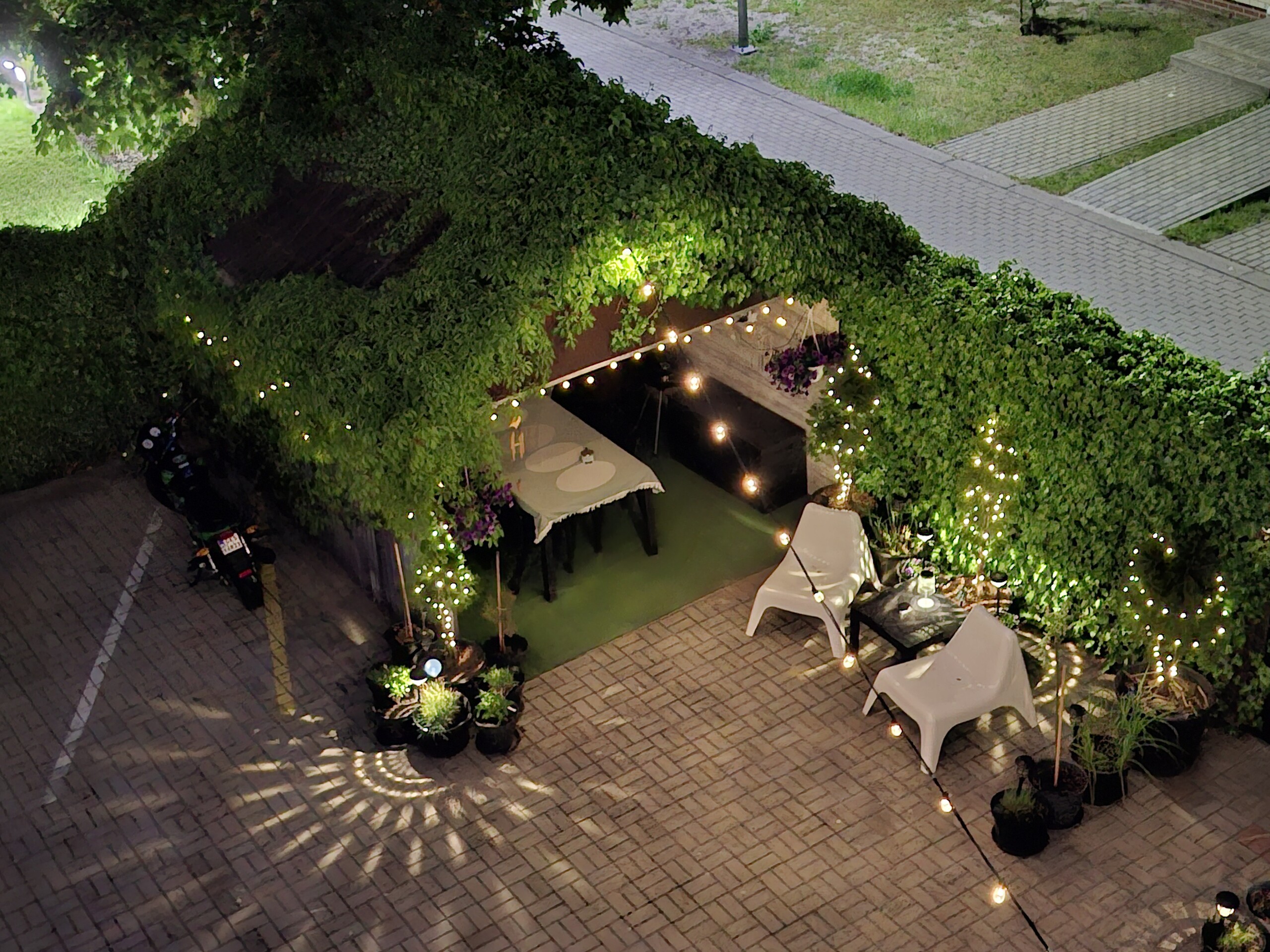 - widok na piękny i zadbany ogród z tarasem