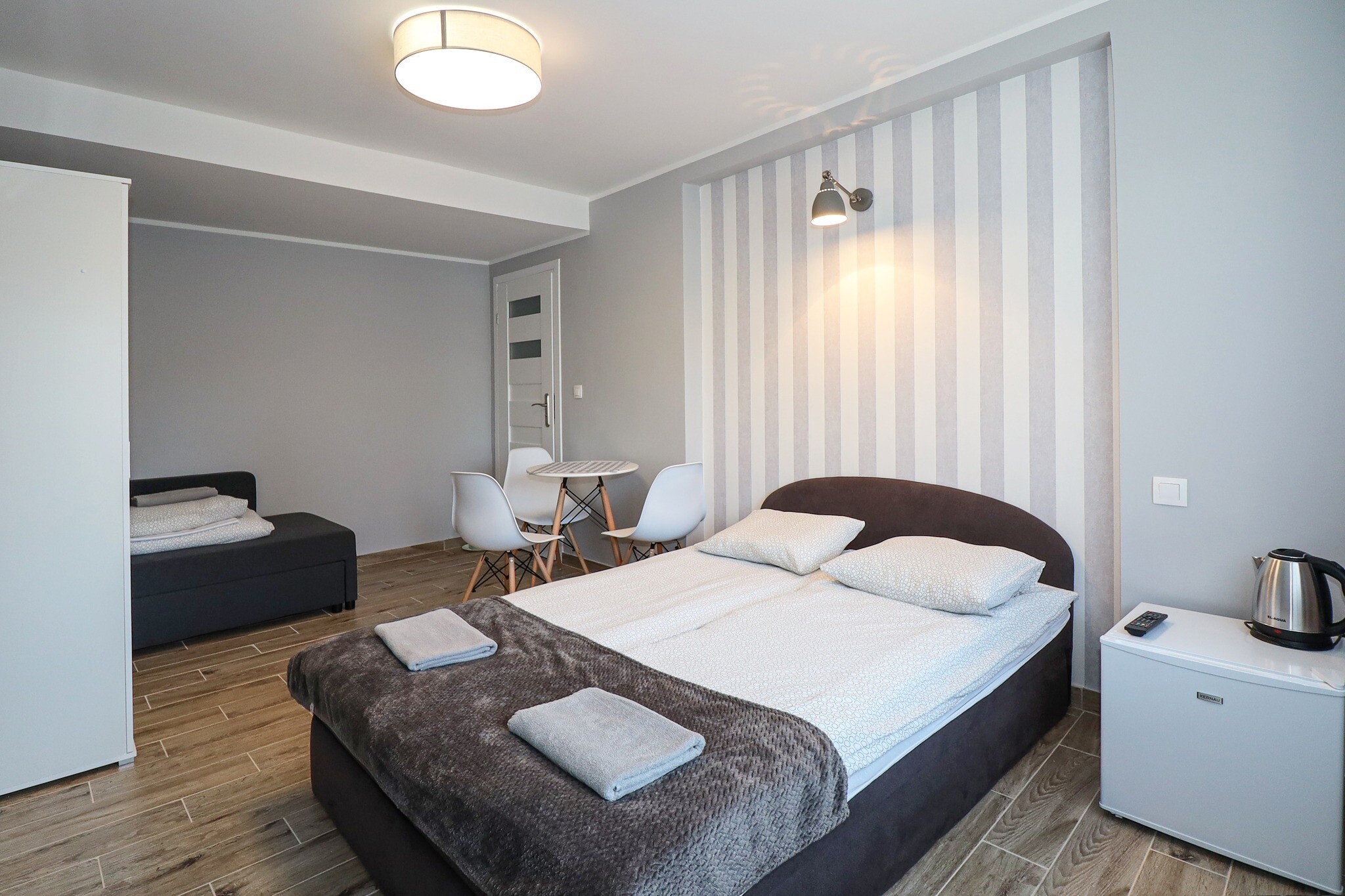 W ofercie zróżnicowane warianty zakwaterowania w pokojach jedno-, dwu-, trzy- i czteroosobowych wyposażonych w łazienki z prysznicem, czajniki i małe lodówki.