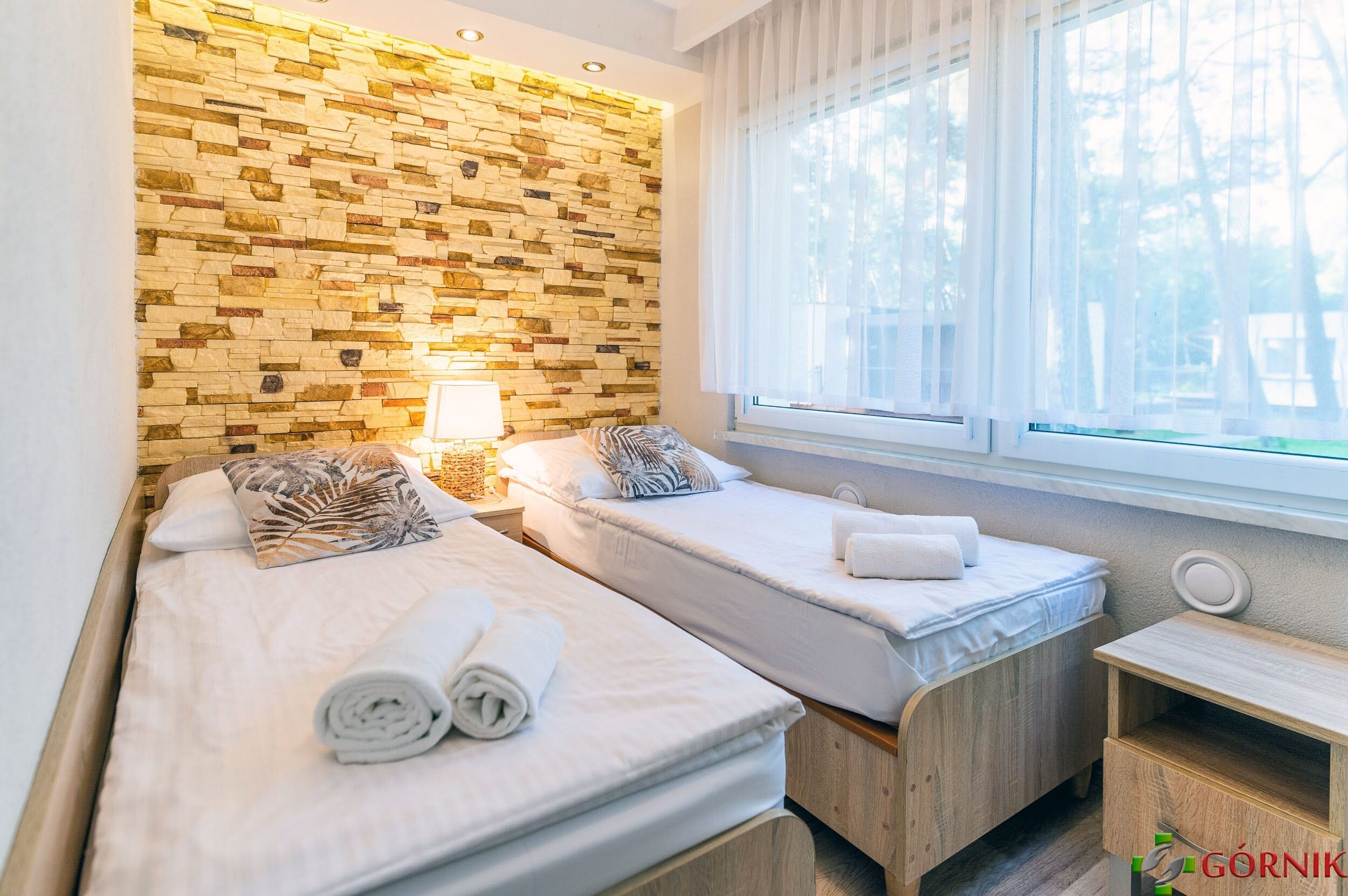 W ofercie Ośrodku Profilaktyki Zdrowotnej Górnik w Łebie znajduje się zakwaterowanie w komfortowych, murowanych, wolnostojących budynkach ocieplonych i ogrzewanych piecami. W wyposażeniu każdego pokoju znajdują się meble, lodówka, telewizor oraz łazienka.