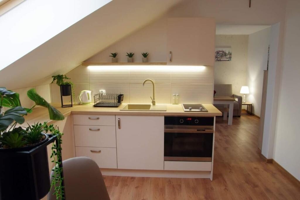 Gwarancję komfortu zapewnia 8 mieszkań – każde z prywatnym aneksem kuchennym, łazienką, pokojem oraz 3 apartamenty z osobnymi sypialniami, aneksem oraz łazienką. Obiekt położony jest pośród pól i łąk nad samym stawem, na terenie ośrodka znajduje się altana z miejscem na grilla, dla najmłodszych gości obiekt oferuje plac zabaw, na którym z pewnością miło spędzą czas.